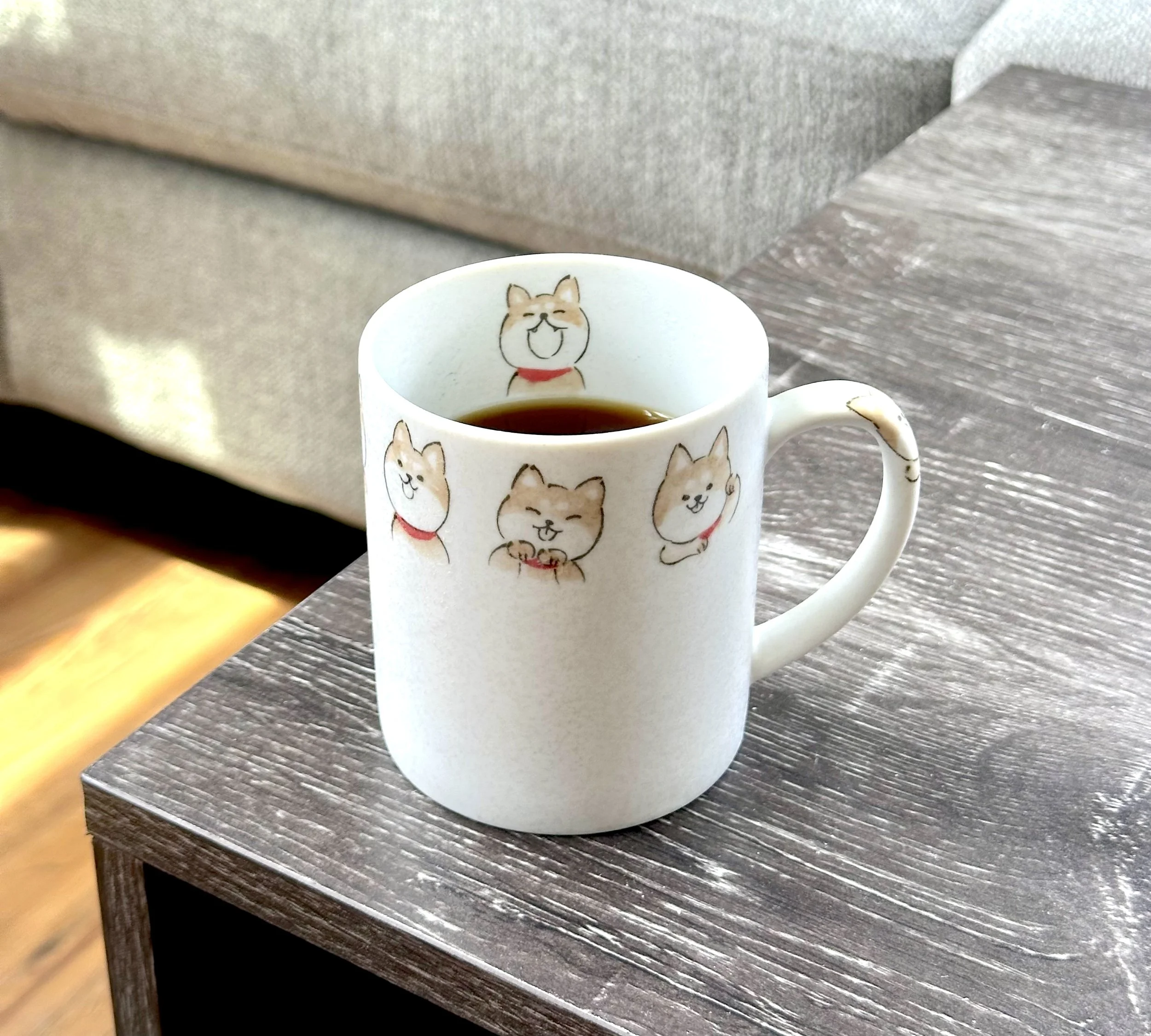 Drinking coffee is a fun experience, and this joyful shiba mug makes it even more so. I love that it perfectly holds a 200g cup of coffee, and the proportions just work. The cup has a pleasing lightly pebbled texture and a good thickness, so sipping is enjoyable. The handle is also very comforting.