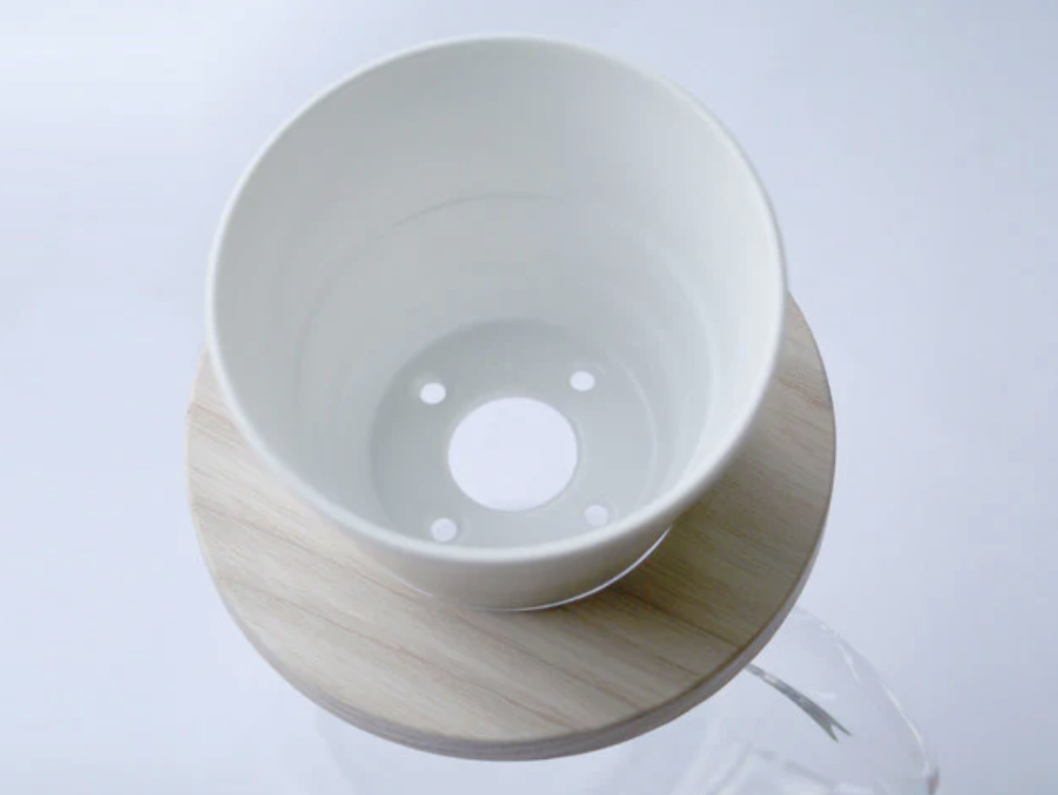 Coned base is designed to sit on a carafe/cup