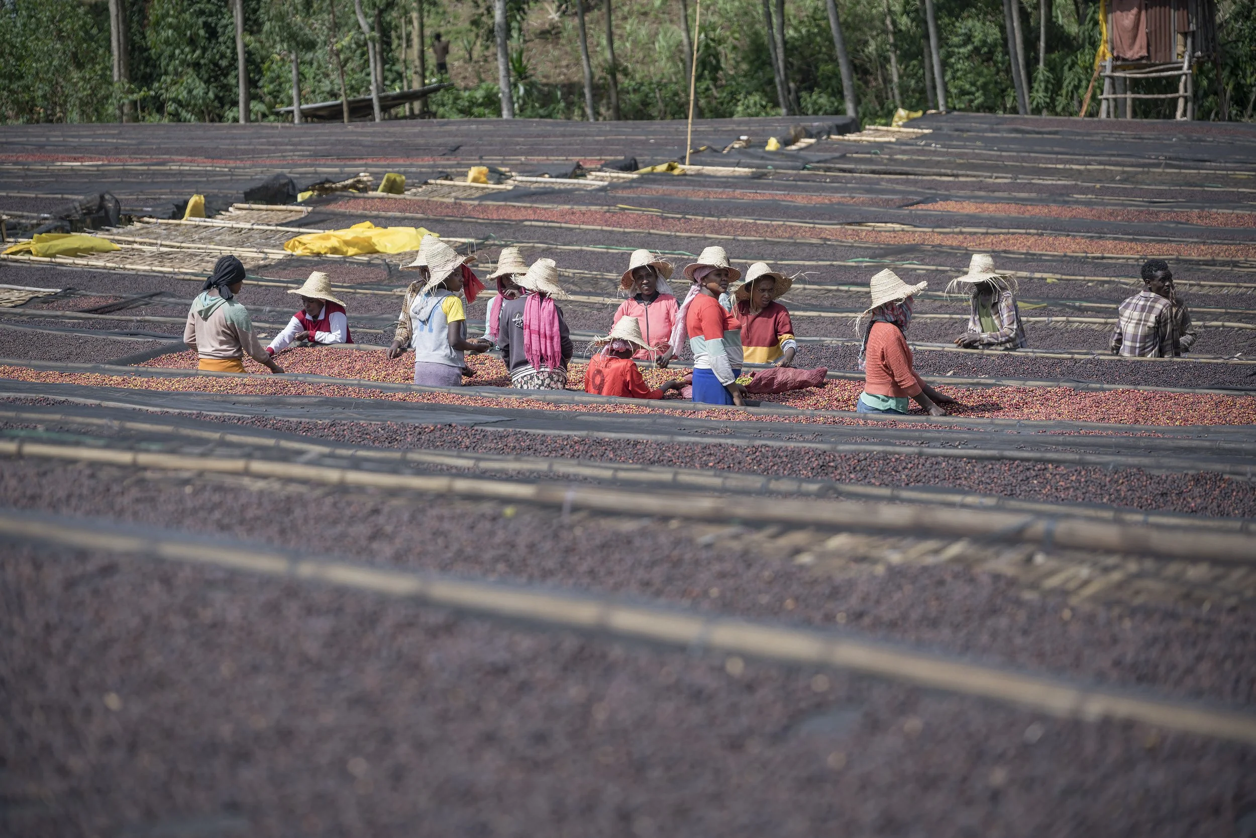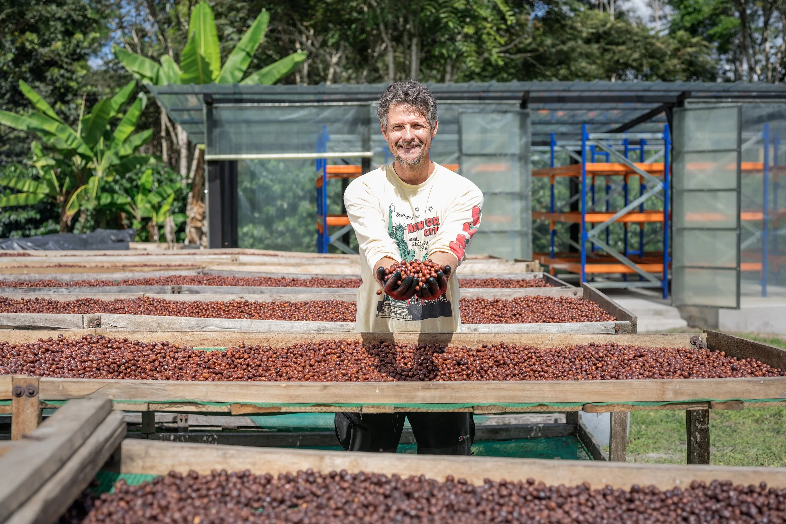 For the TIM Natural process, the same microbial cultivation method is used, with the whole cherries undergoing fermentation for four days before being moved to shaded raised beds to dry as whole cherries for five weeks. This extended fermentation and drying period enhances sweetness, deepens fruit-forward complexity, and creates a rich, full-bodied coffee.