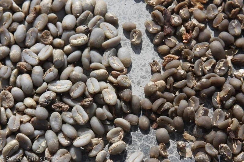 From Sweet Maria’s, fresh wet-hulled on the left vs. dried on the right